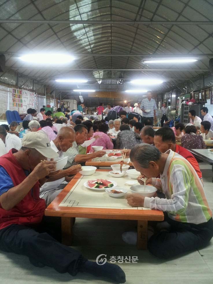 청원군 문의면 새마을부녀회(회장 김영순)가 23일 두모리 대청노인대학에서 관내 어르신 200여 명에게 맛 좋고 영양가 높은 콩국수를 제공해 호응을 얻었다.