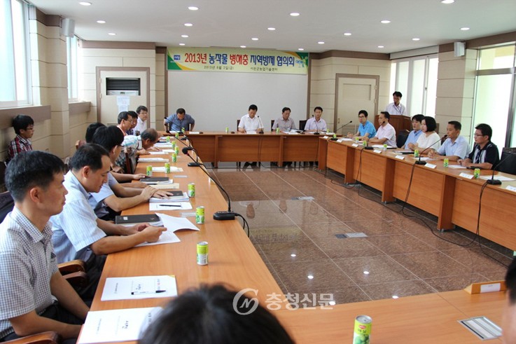 서천군농업기술센터는 계속되는 고온 다습한 날씨로 병해충이 늘어날 것으로 예상됨에 따라 최근 농업기술센터 회의실에서 농업관련 유관기관 및 읍.면 산업담당 등 40여명이 참석한 가운데 ‘농작물 병해충 지역방제협의회’를 가졌다.