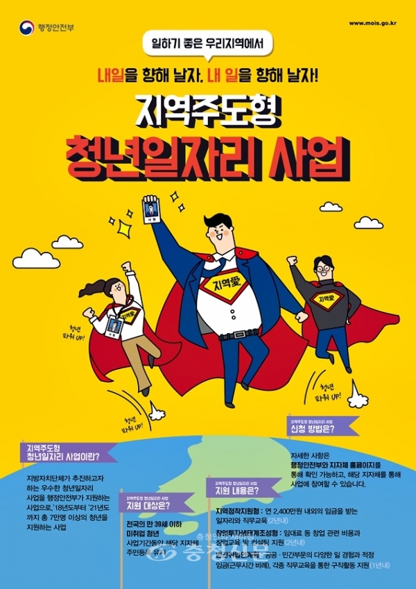 행정안전부가 주관하는 지역주도형 청년 일자리 사업은 만 18세 이상부터 만 39세 이하의 청년에게 적합한 지역 일자리를 제공해 자산형성이 가능한 수준의 소득을 창출하는 경제활동 지원 사업이다.