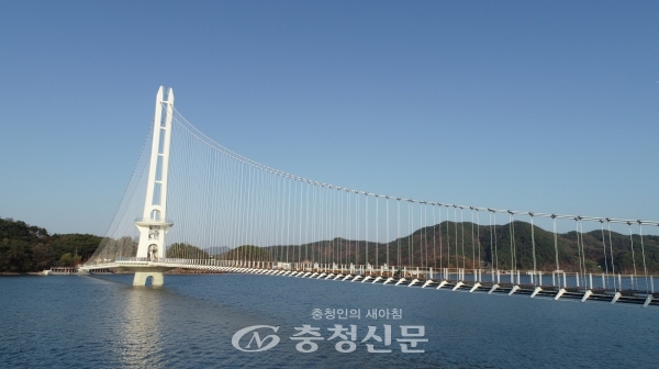 [충청신문=예산] 박제화 기자 = 국내에서 가장 긴 예산군 예당호 출렁다리가 완공됐다.