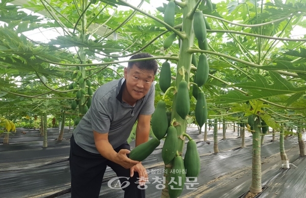 오창읍 윤재섭 농가는 파파야를 시설하우스 1980㎡에서 올해 4월 초 정식해 350주 재배하고 있다.
