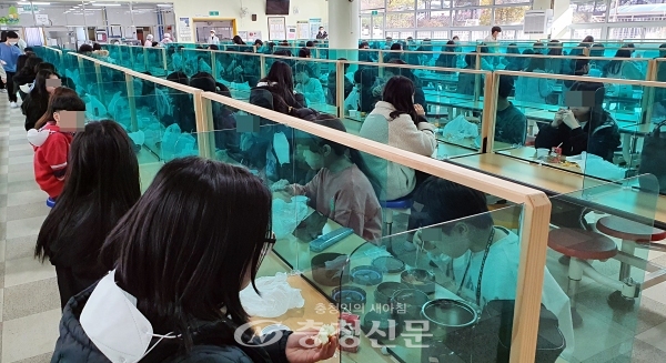 [충청신문=대전] 이정화 기자 = 2일 전국학교비정규직연대회의가 2차 총파업을 한 가운데 대전지역 내 한 학교 학생들이 빵·떡·주스 등 학교에서 제공한 완성품과 집에서 가져온 도시락 등을 먹고 있다.