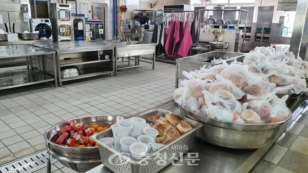 [충청신문=대전] 이정화 기자 = 전국학교비정규직연대회의가 제2차 총파업에 들어간 2일 점심시간 대전지역 내 한 학교 조리실이 텅 비어있다.