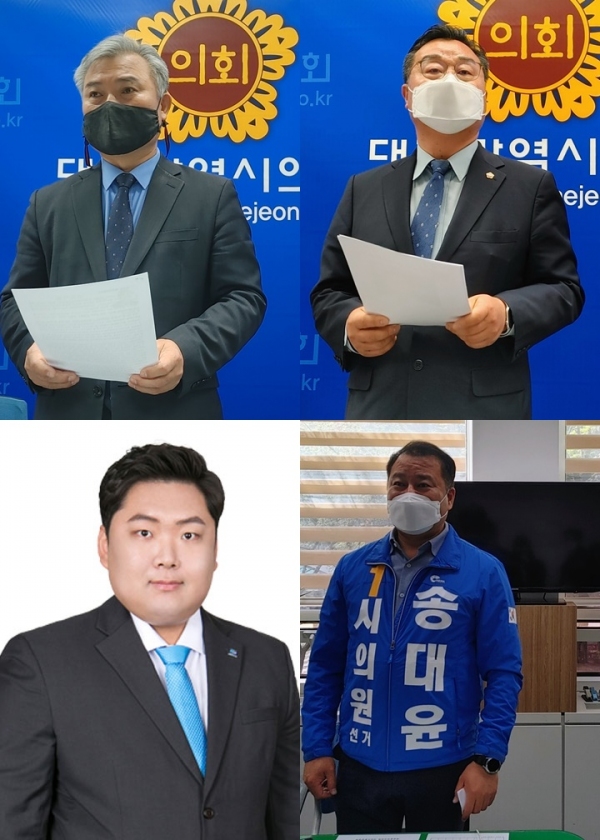 작년 7월 29일 시장 출마 선언을 했던 정기현 시의원은 “대전 미래를 위해 인재를 양성하는 ‘교육시장’이 되겠다는 꿈으로 도전해왔으나, 대선 패배 이후 긴 시간 고민 끝에 성찰과 새 출발, 민주개혁 세력의 통합을 모색하기 위해 시장의 꿈은 여기서 중단한다”면서 “이재명 후보가 내세웠던 여러 정치 개혁 프로그램에 참여하고, 더불어민주당의 승리를 위해 백의종군하며 최선을 다하겠다”고 대선 패배에 대한 책임, 당 내 통합이라는 대의명분을 내세워 불출마 의사를 피력했다.