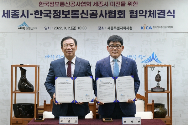 세종시는 세종시청 접견실에서 최민호 시장과 강창선 한국정보통신공사협회 중앙회장이 참석한 가운데 한국정보통신공사협회 세종시 이전 업무협약을 체결했다고 4일 밝혔다.