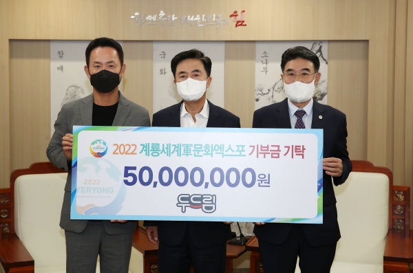 이날 기탁식에는 엑스포공동조직위원장인 이응우 계룡시장, 유병훈 사무총장과 주식회사 두드림 관계자 등 10여 명이 참여했다.