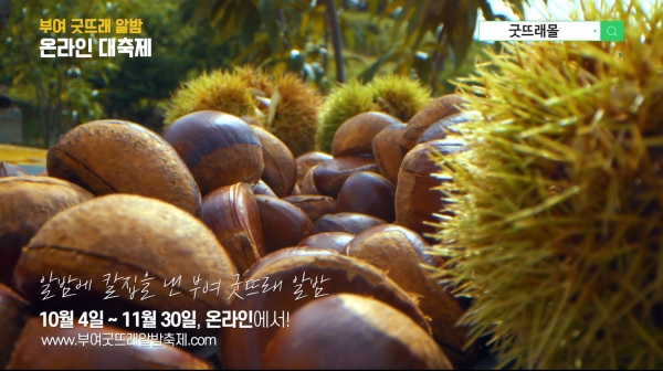 전국 최대 생산량을 자랑하는 부여 알밤을 알리기 위해 시작된 이 축제는 코로나19 여파로 취소된 2020년을 제외하고 매년 개최돼 왔다. 지난해부터는 축제 무대를 온라인으로 전환했다. 코로나19 시대에 대응하고 민간 주도형 축제로 거듭나려는 기획이다.