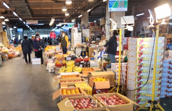 ▲ 수확의 계절을 맞아 2일 대전 오정동 농수산물시장에 제철과일을 맛보려는 시민들로 북적이도 있다.(사진=김의영 기자) [충청신문=대전] 김의영 기자 = 수확의 계절을 맞아 2일 대전 오정동 농수산물시장(농협대전공판장)에 제철과일을 맛보려는 시민들로 북적이도 있다.