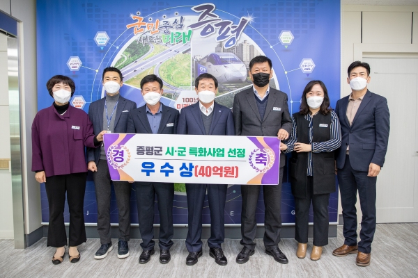 군은 충북도에서 주관한 올해 시·군 특화사업 공모에서 우수상을 받아 특별조정교부금 40억원의 사업비를 확보했다.