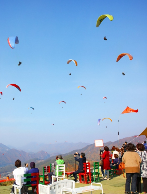 패러글라이딩 활공장이 있는 두산마을과 양방산에는 늦가을의 정취를 만끽하려는 수많은 관광객들이 꾸준히 방문해 지역 경제 활성화에도 효자 노릇을 톡톡히 하고 있다.