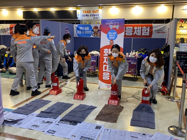 [충청신문=대전] 우혜인 기자 = 대전시가 지난 2일 중앙로지하상가 무대공연장·중앙분수대에서 '세이프(Safe)대전 안전문화 캠페인 한마당' 행사를 개최한 가운데 시민들이 소화기 사용법과 화재대응요령 등 일상에서 필요한 위기상황 대응 체험, 심폐소생술·응급처치 교육을 체험하고 있다.(사진= 우혜인 기자)