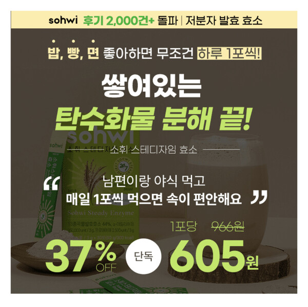75만포 전량완판! "돌고돌아 결국 찾는건 소휘 소화효소 였어요" 밥,빵,면 좋아하면 무조건 하루 1포씩만 드세요단99명한정 1포 605원
