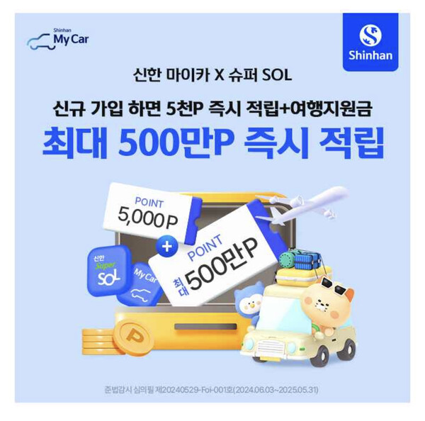슈퍼 SOL “슈퍼한 10억 여행지원금 잡기 이벤트” 신규 가입 완료 후 슈퍼SOL앱 내 슈퍼SOL 신규고객 환영 이벤트 응모 시 OOOOP ~ 500만P 100% 랜덤 즉시 추가 적립! OOOO안에 들어갈 숫자는 무엇일까요? (힌트: 숫자)