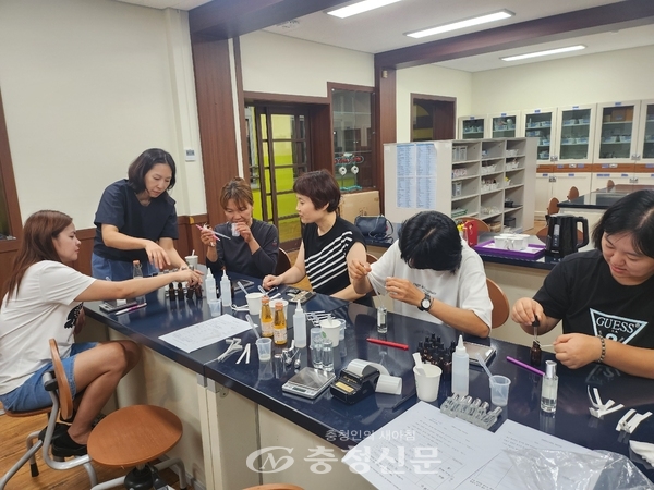 ▲ 보령 청소초등학교는 지난 8일 학부모 대상 나만의 천연 향수 만들기 강좌를 운영했다. (사진=보령교육청 제공)
