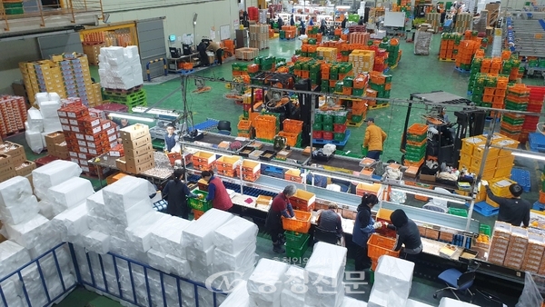 ▲ 제주 감귤 유통센터 현장 모습 (사진=충북도 제공)