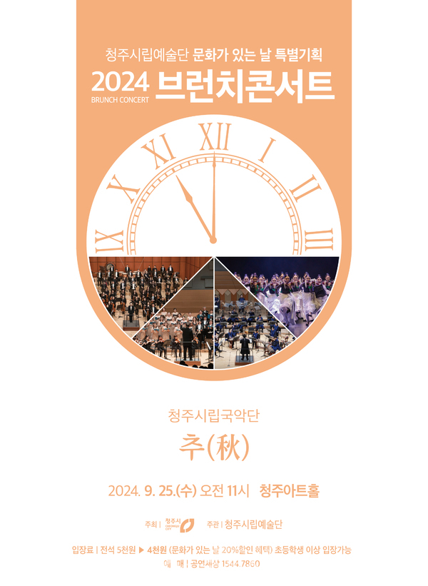 김원선 예술감독 겸 상임지휘자는 “청주시립국악단의 아름다운 국악 선율로 청명한 가을 하늘을 수놓을 이번 브런치콘서트에 많은 관심 바란다”고 전했다.