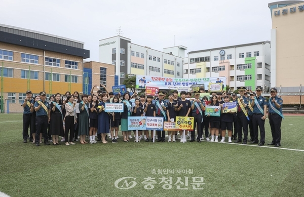 18일 대전교육청에 따르면 친구사랑 3운동 행사의 일환으로 마련된 이번 행사는 대전동부교육지원청, 대전시경찰청의 협조를 받아 학생자치회와 합동으로 진행했다.