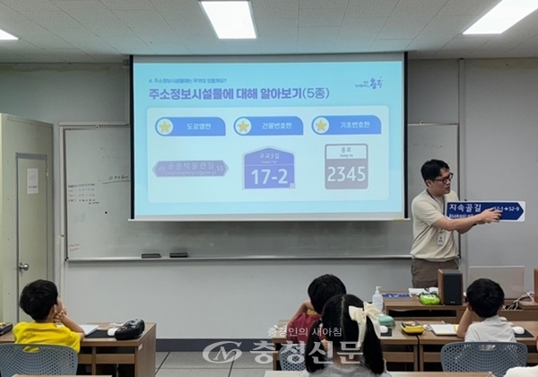 교육은 충주시 관내 면지역 초등학교를 대상으로 진행되고 있으며, 애니메이션 홍보영상을 시청하고 도로명주소 담당자의 설명을 들으며, 도로명주소를 배우는 메타버스 체험과 퀴즈 등을 포함한 실습 위주 교육으로 진행된다.