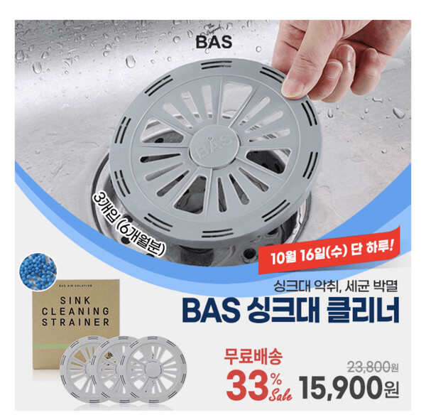 한 달에 2,650원으로 주방 관리 끝내기! BAS 싱크대는 OO에도 잘 녹는 세정제로 싱크대를 사용하면 제품 안에 있는 세정 성분이 싱크대 배수구를 청결하게 유지시켜 줍니다.