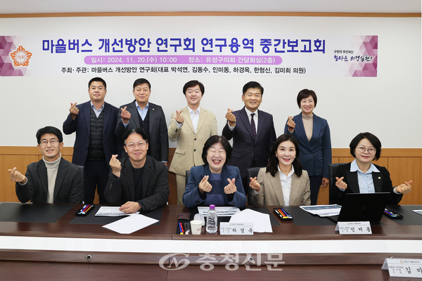 연구회는 대표의원인 박석연 의원을 비롯해 김동수 의장, 인미동·하경옥·한형신·김미희 의원이 참여하고 있으며 지역 주민과 전문가의 의견 수렴을 바탕으로 유성구 마을버스 운영 체계의 개선 방향을 모색하고 있다.