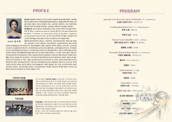 또한, 무대는 2022년 창단된 가온앙상블과의 협연으로 더욱 풍성해질 예정이다. ‘온기를 더하다’는 뜻을 지닌 가온앙상블은 거제도를 기반으로 활발히 활동하며 따뜻한 감성을 전하는 전문연주자단체다.