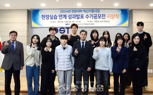 [충청신문=대전] 김태일 기자 = 대전과학기술대학교는 지난 6일 혜천관 대회의실에서 열린‘현장실습 연계 성과발표 수기공모전’ 에서 ‘꼬마 친구들과의 여름(소아물리치료센터 실습 후기)’를 제출한 물리치료과 유영준씨에게 대상을 수여했다고 9일 밝혔다. <사진=대전과학기술대학교 제공>