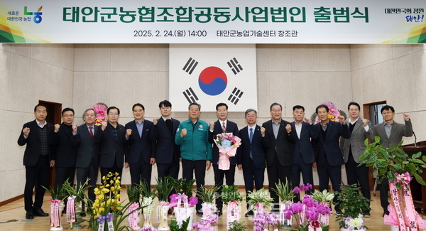 태안군은 지난 24일 태안군농업기술센터 창조관에서 가세로 군수 등 군 관계자와 군의원, 농협 관계자, 지역 농업인 등 200여 명이 참석한 가운데 ‘태안군농협조합공동사업법인 출범식’을 개최했다고 밝혔다.