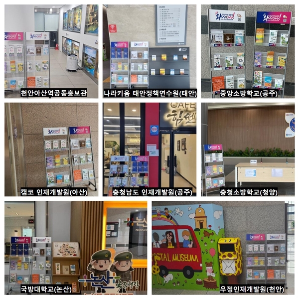 게시대는 △우정인재개발원 △중앙소방학교 △캠코인재개발원 △국방대학교 △나라키움 태안정책연수원 △천안아산역 공동홍보관 △도인재개발원 △충청소방학교 등 총 8곳에 비치했다.