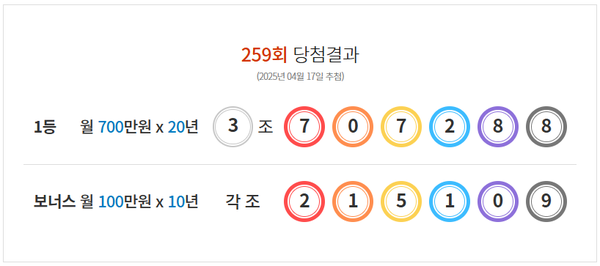 260회 연금복권 추첨 앞두고... 259회 당첨결과는?