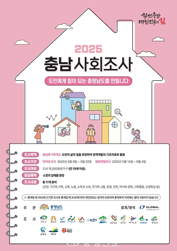전승현 도 AI데이터정책관은“충남 사회조사는 도민 삶의 질 향상과 정책 수립의 소중한 밑거름이 되는 중요한 조사”라며“표본으로 선정된 가구의 적극적인 참여가 충남의 더 나은 미래를 만드는 데 큰 힘이 된다”고 말했다.
