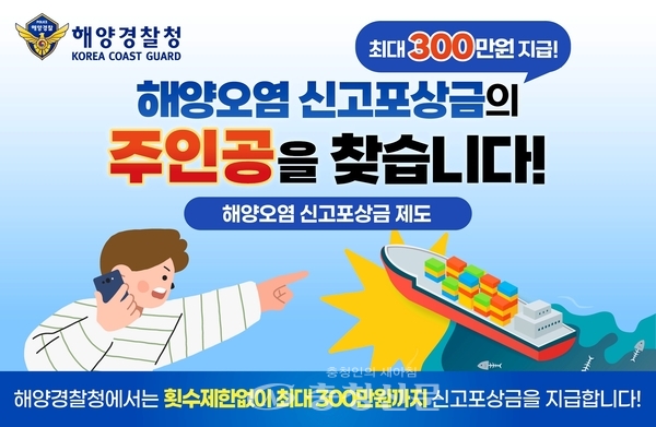 12일 태안해경에 따르면 해양 포상금제는 해양환경에 대한 관심 제고와 오염 사고 예방을 위한 것으로 최대 300만 원까지 포상금을 지급한다.