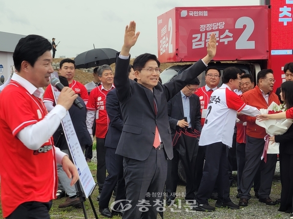 김 후보는 "(세종이) 교통이 좀 불편하다. 대통령이 되면 즉시 대전-세종-오송-청주-청주공항으로 연결되는 CTX(대전-세종-충북 광역급행철도)를 반드시 완성할 것"이라고 약속했다.