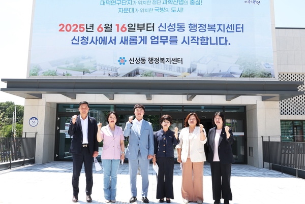 [충청신문=대전] 최일 기자 = 대전 유성구의회 행정자치위원회(위원장 박석연, 왼쪽 세 번째)는 제278회 정례회 중 현장 방문 일환으로 11일 신성동 행정복지센터 신축 현장을 찾아 공사 진행 상황을 점검했다. (사진=유성구의회 제공)