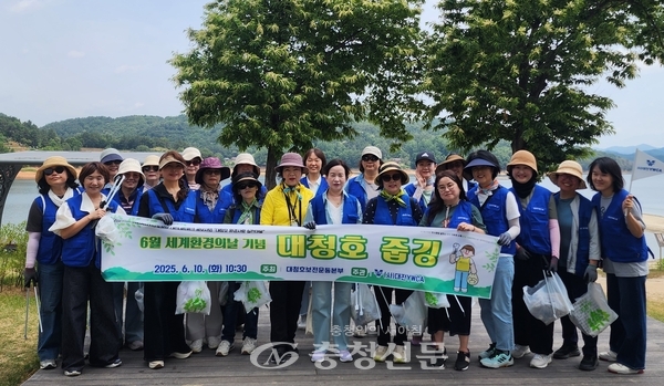 [충청신문=대전] 최일 기자 = 대전YWCA는 대청호보전운동본부와 함께 지난 10일 대청호 명상정원 일원에서 시민 참여형 생태 보전 프로그램 ‘대청호 줍깅’ 행사를 진행했다. 줍깅은 ‘줍다’와 ‘조깅’의 합성어로 참가자들은 자연 속을 걸으며 쓰레기를 수거하는 활동을 통해 생태환경의 소중함을 되새겼다. (사진=대전YWCA 제공)