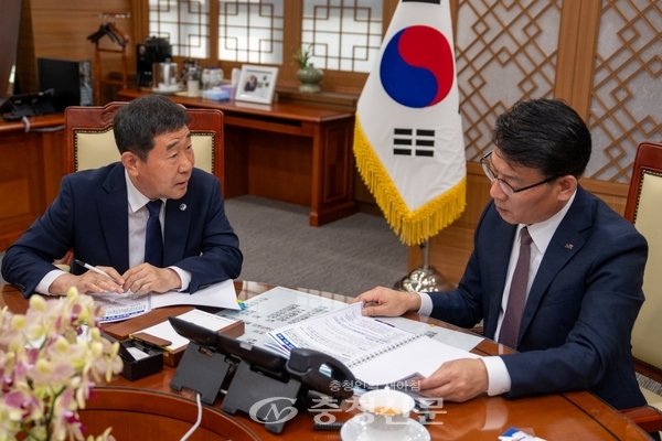 이재영 군수는 12일 한국농어촌공사 김인중 사장을 만나 증평의 주요 농정 현안사업을 공유하고, 원활한 사업 추진을 위한 협조를 요청했다.