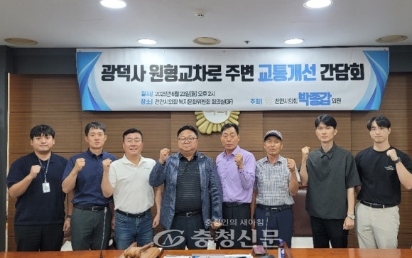 이러한 논의의 출발점은 지난 23일 오후 천안시의회 복지문화위원회 회의실에서 열린 『광덕사 원형교차로 주변 교통개선을 위한 간담회』였다. 간담회는 박종갑 천안시의회 의원 주관으로 열렸으며, 광덕면 주민들과 천안시 건설도로과·교통정책과 공무원, 유영채 건설도시위원회 의원이 참석해 실질적인 개선 방안에 대해 심도 있는 의견을 교환했다.