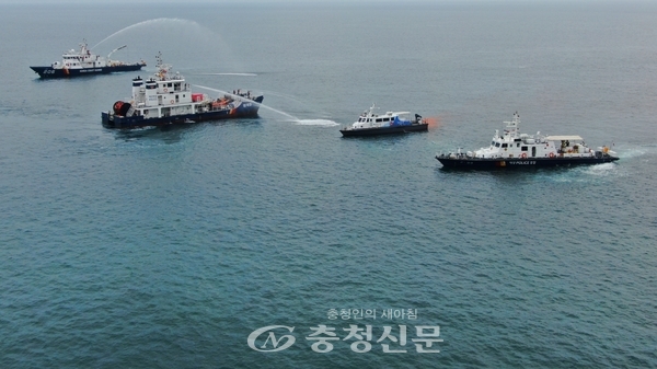 이날 훈련은 해경과 군이 함께 불순세력이 신진(안흥)항만으로 침투하는 상황을 가정, 추적과 차단 기동을 통한 제압에 이어 선박 화재 진압과 인명구조 등 실전을 방불케 하는 훈련으로 통합방위 태세를 점검했다.