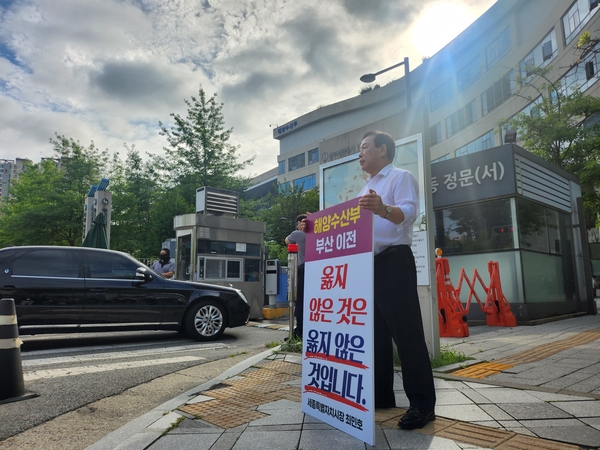 한편, 최 시장은 오는 4일까지 오전 8~9시 해수부 공무원들의 출근 시간에 맞춰 1인 시위를 할 예정이다.