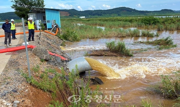 시는 남은 123㏊의 농경지에서 양수기를 임시 투입하고, 배수장 가동으로 물빼기 작업을 벌이고 있다.