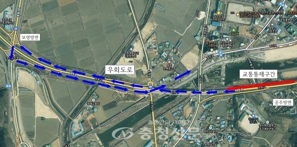 논산국토관리사무소는 청양경찰서와 청양군 등 관계기관과 사전 협의를 거쳐 통제 기간 동안 차량 이용자의 불편을 줄이기 위한 우회도로를 마련했다.