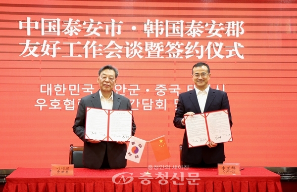 군은 6일 자매도시인 중국 태안시에서 가세로 군수와 이란상 태안시장 등이 참석한 가운데 우호 교류 증진 협약을 체결했다고 9일 밝혔다.