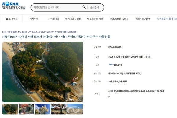이날 군에 따르면 해당 프로그램은 코레일과 협업으로 진행하는 관광상품으로 그간 인기를 끌었던 ‘태안 시티투어’의 하나다.