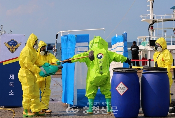 훈련은 대산지방해양수산청과 서산화학재난합동방재센터·해양환경공단 등 14개 관계 기관 등이 참여했으며, 기관별 역할 분담과 공조 체계 강화에 중점을 뒀다.