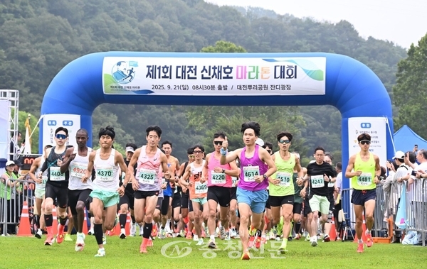 21일 대전 중구 안영동 뿌리공원 일원에서 ‘제1회 대전 신채호 마라톤대회’가 열려 참가자들이 힘찬 출발을 하고 있다. (사진=중구 제공)