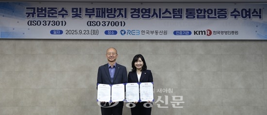 부동산원은 공인 인증기관인 한국경영인증원(KMR)으로부터 규범준수 경영시스템(이하 ISO 37301)과 부패방지 경영시스템(이하 ISO 37001) 인증을 동시에 취득했다고 24일 밝혔다.