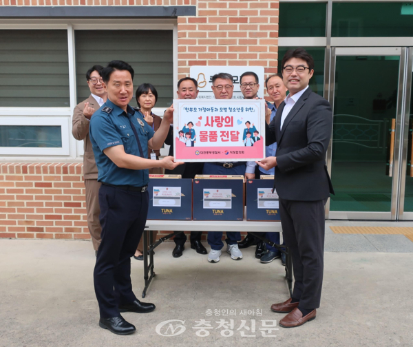 [충청신문=대전] 남수현 기자 = 대전중부경찰서가 지난 2일 추석 명절을 맞아 중구 선화동에 위치한 루시모자원에 방문해 위문품을 전달하고 기념촬영을 하고 있다.(사진=대전경찰청 제공)