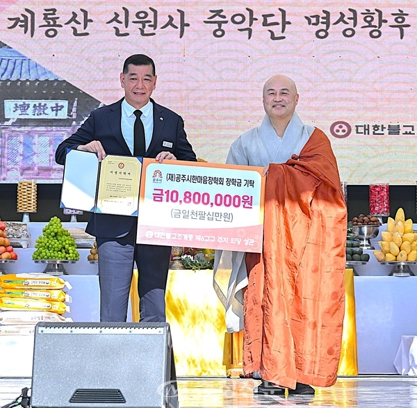 이날 장학금 기탁식은 신원사에서 봉행한 ‘제14회 명성황후 추모대제’와 함께 진행됐으며, 불교계 전통문화의 계승과 더불어 지역사회 발전에 동참하고자 하는 신원사의 사회공헌 의지를 보여준 자리였다.