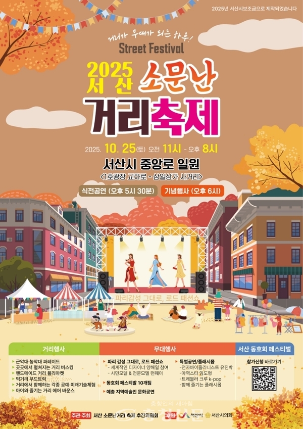[충청신문=서산] 이승규 기자= 충남 서산시는 25일 중앙로 일원에서 '2025 서산 소문난 거리 축제'를 개최한다고 20일 밝혔다.