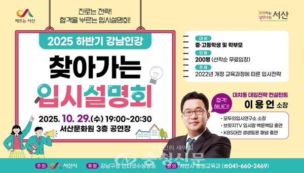 입시설명회는 무료이며, 관내 중고교생과 학부모 등 선착순 200명을 대상으로 진행한다.