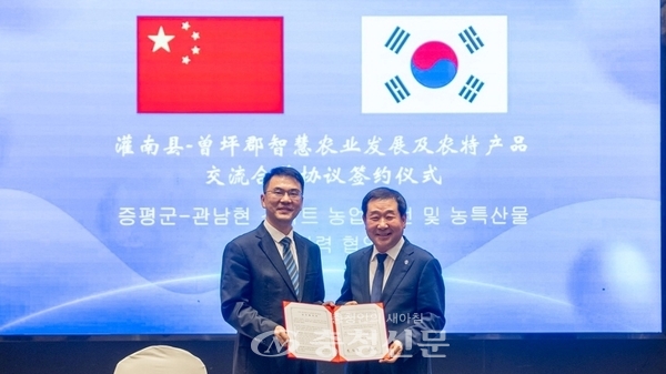 이재영 군수는 지난 16일 저녁 6시(현지시간) 관남현 숴쌍후호텔에서 열린 정식회담 자리에서 고참 관남현 현장과 ‘스마트농업 발전 및 농·특산품 교류 활성화를 위한 업무협약(MOU)’을 체결했다.